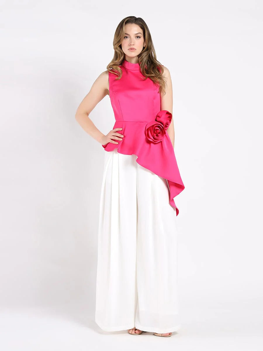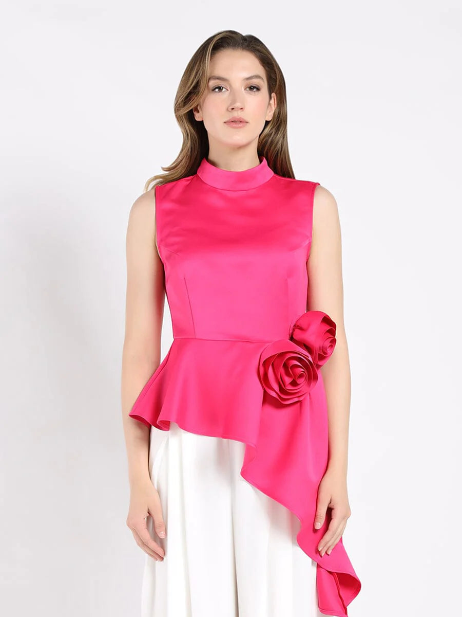 GRACIA-Flower Applique Sleeveless Asymmetrical Top