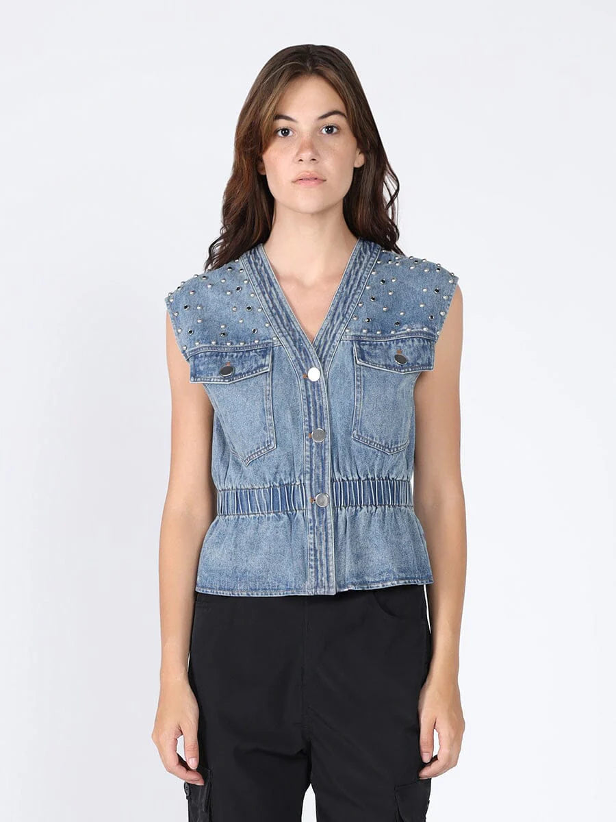GRACIA-Elastic waist Denim Vest
